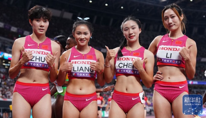 9月20日,在日本东京举行的2025年世界田径锦标赛女子4x100米接力预赛中,由梁小静、李玉婷、朱俊颖、陈妤颉组成的中国队获小组第六。↑